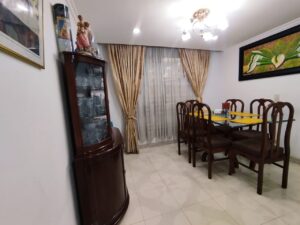 • Primer piso: Garaje amplio para 3 automóviles y un espacio adicional para varias motos, sala, comedor, cocina integral, deposito y baño social con ducha.